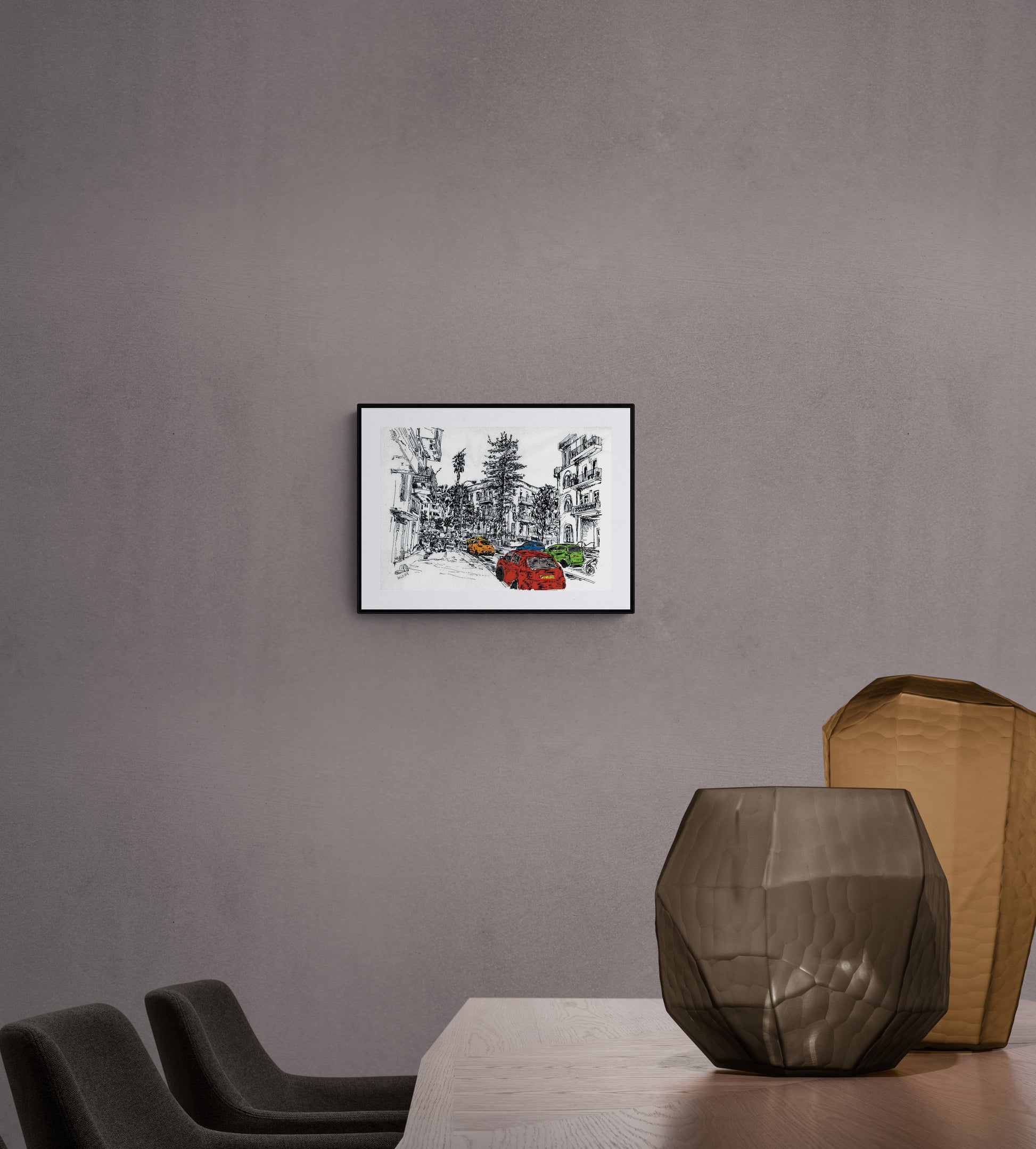 Limited Art Print by David Schuler. Signed and numbered by the Artist. Acrylic pen, black & white with colour dots. Printed on 240g high-quality paper. FRAME IS NOT INCLUDED. Shipped in a protective tube or carton box.