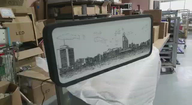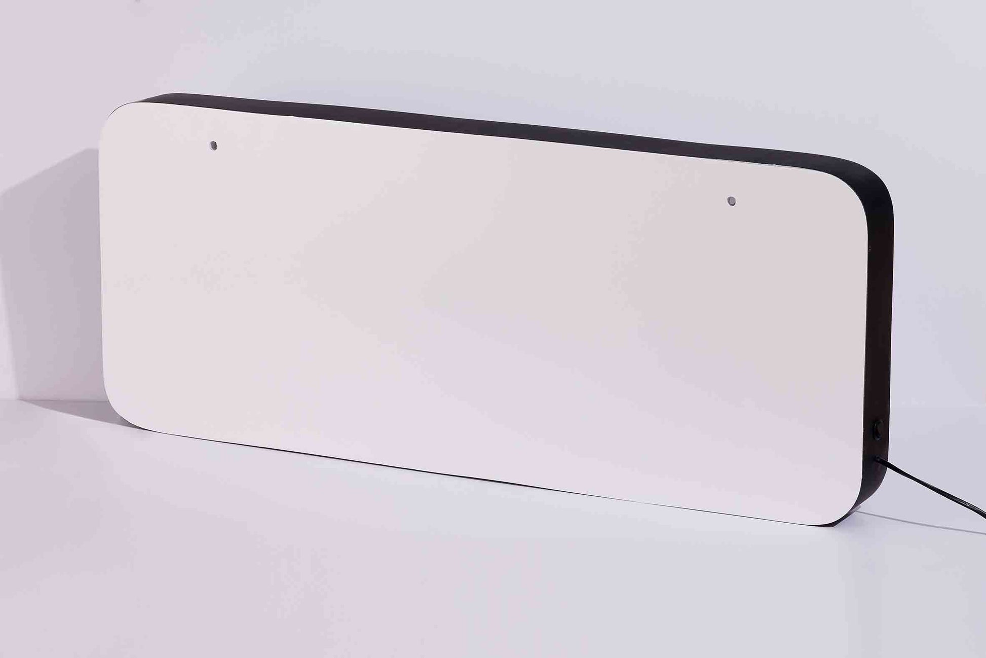 Light Box made of PVC sides and front made of Plexiglas, glued together as one piece, including black paint . Light Box large rectangle 100 X 40 cm | 39.4 X 15.7", weight 0.9 kg | 2 lb. LED soft light turn on/off button. Transformer inside with black cable outside. Could be also directly connected to the electricity in the wall. Ready for wall mounting with two hangers. Light weight also suitable on not solid walls.