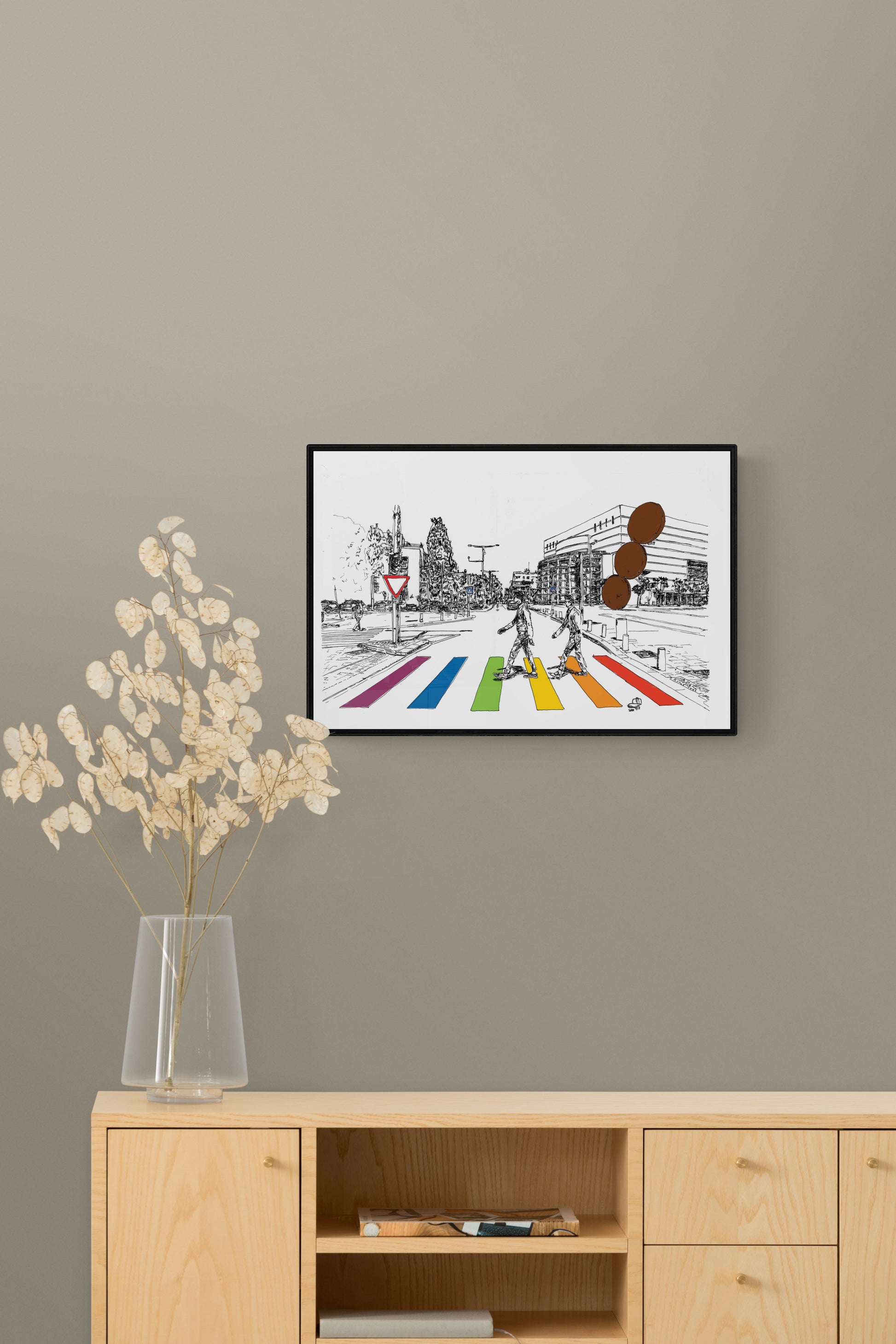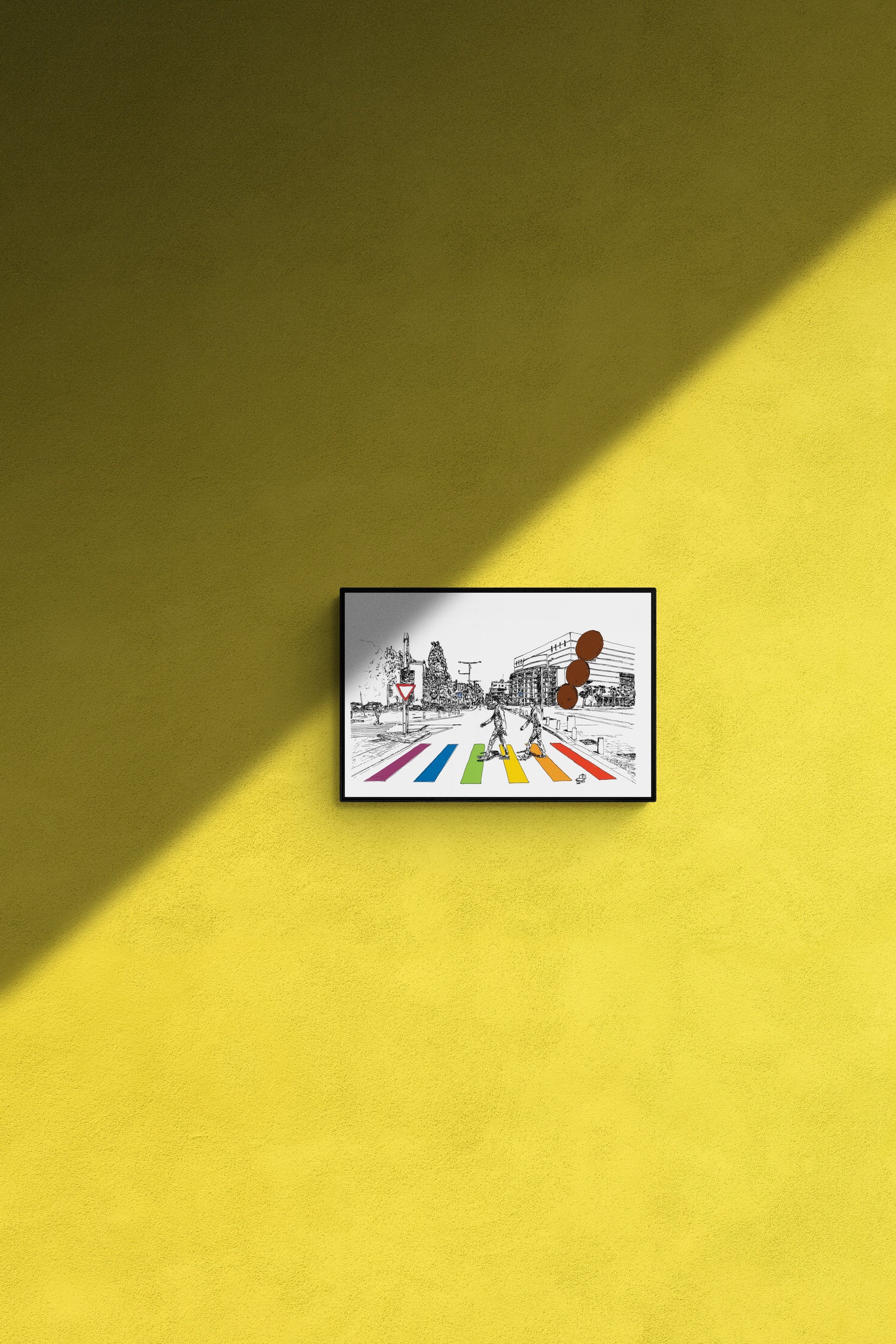 The image of the Rainbow crosswalk on Rothschild Boulevard near the famous HaBima Theatre is a call to controversy with the Tel Aviv town hall that for an advertising campaign paint the crosswalk for two hours in rainbow colours and after repaint it white. For the campaign of the Gay Pride (2012). They drawing is showing Ivry Lider and Johnny Goldstein crossing the street like in Abbey Road on the famous album cover by the Beatles. The artists were performing at the Gay Pride as the electronic group TYP (The Young Professionals).