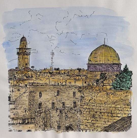 ORIGINAL WATERCOLOR PAINTING KOTEL WESTERN WALL JERUSALEM MIXED COLOURS