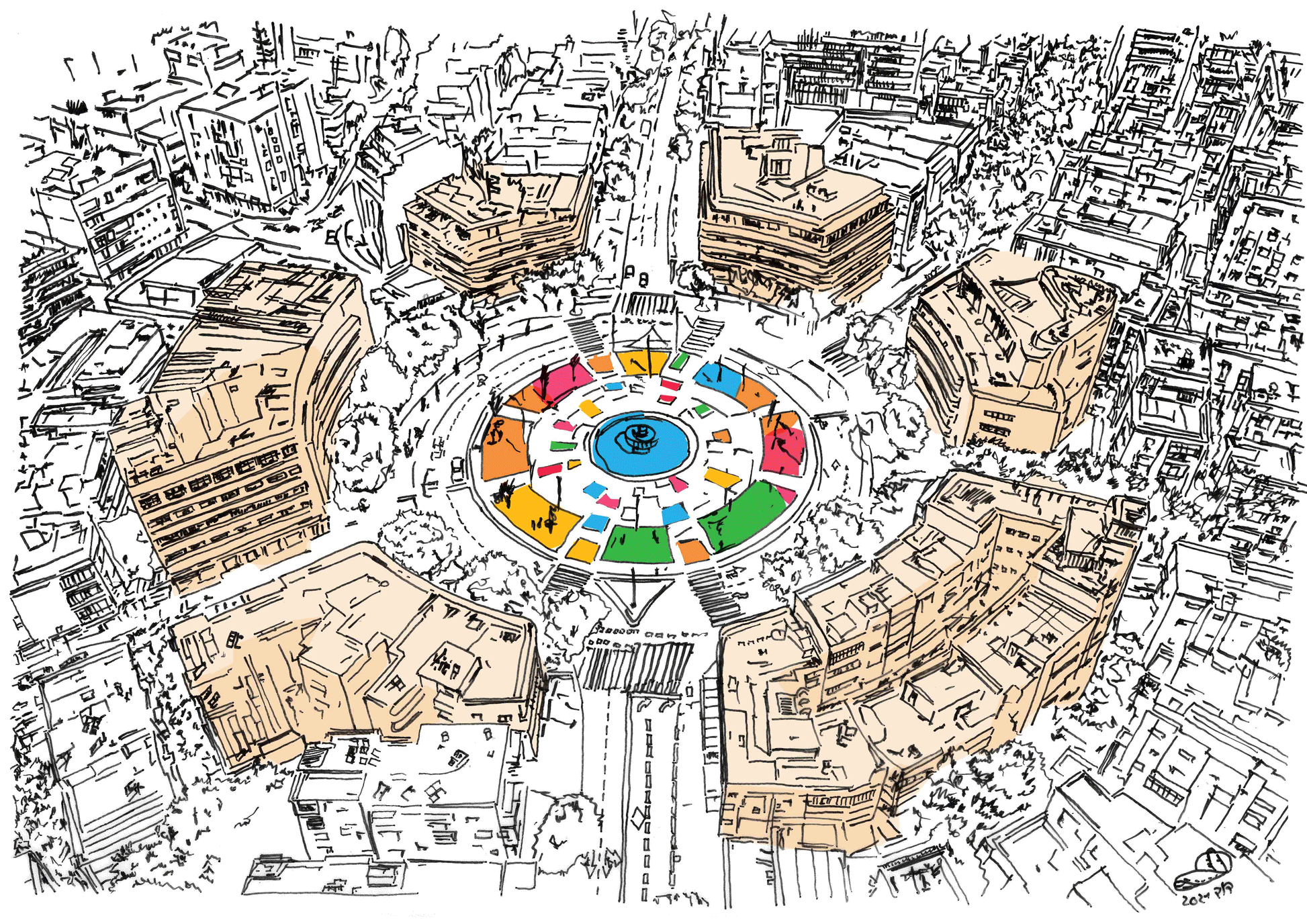 The beautiful and historical important Bauhaus buildings surrounding Dizengoff Square from a bird view. Enjoy!