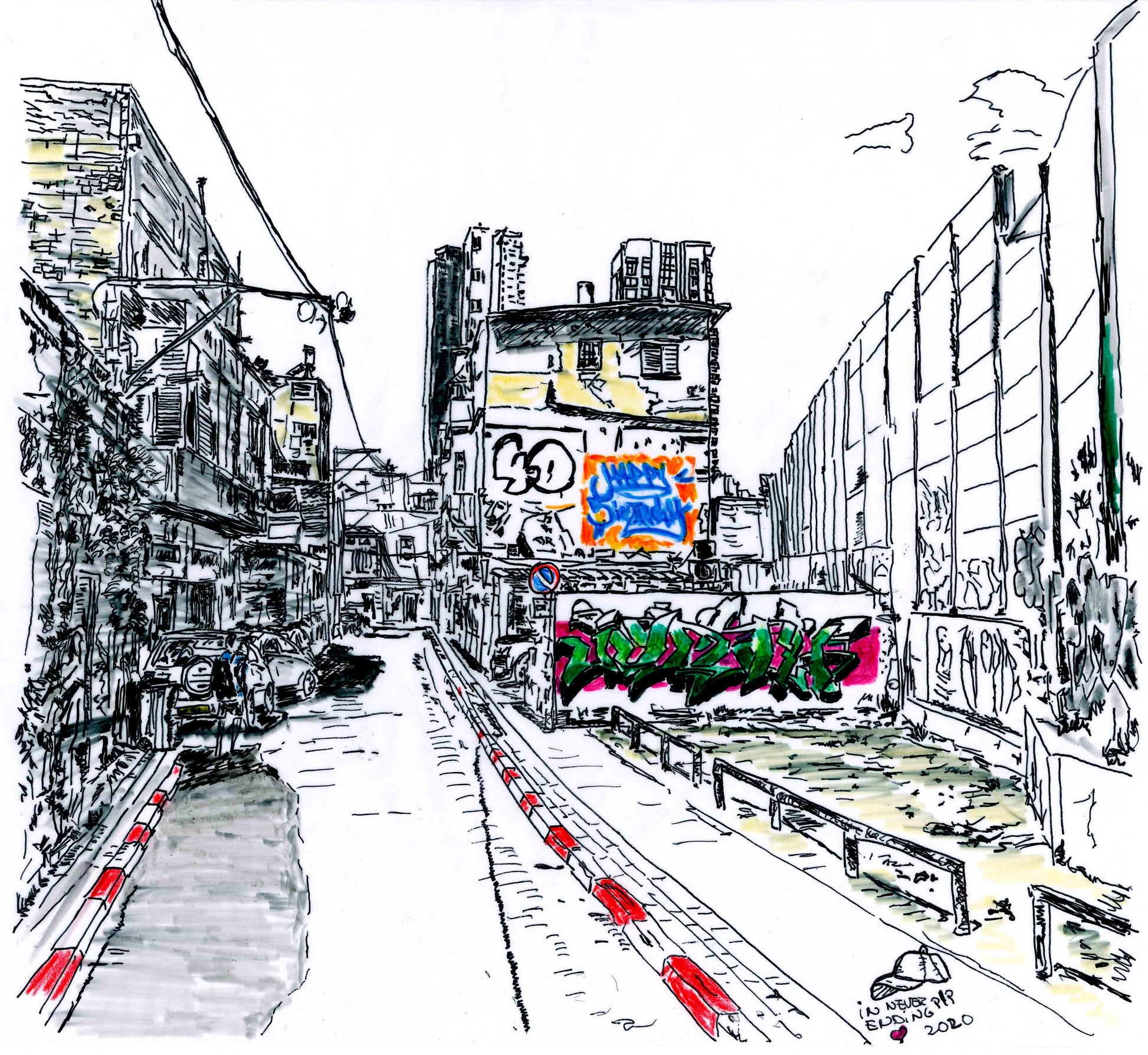 Limited Art Print by David Schuler. Signed and numbered by the Artist. Acrylic pen, black & white with colour dots. Printed on 240g high-quality paper. FRAME IS NOT INCLUDED. Shipped in a protective tube or carton box.